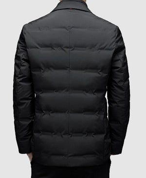 This men's parka combines the clean lines of a coat with the functionality of a winter jacket. Its striking silhouette, structured fit, and high-quality craftsmanship make it an ideal companion during the colder months.