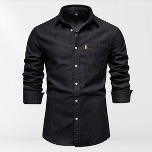 This men's shirt brings clean lines to your wardrobe. The long sleeves can be rolled up for a casual look or worn long for a more formal style. It's suitable for different seasons and complements a variety of outfits.