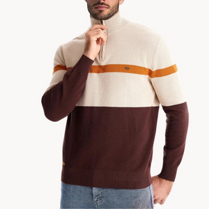 The Florent men's sweater combines sporty charm with a classic cut. The striped pattern and practical zip collar make it a versatile companion for everyday wear and leisure activities.