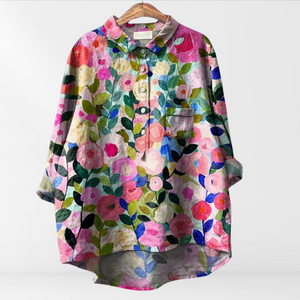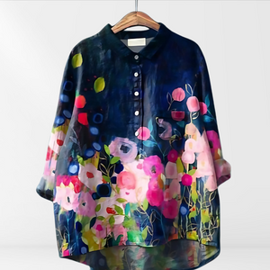 The Karla blouse combines clean lines with an artistic all-over print. It is versatile and suitable for both the office and leisure time.