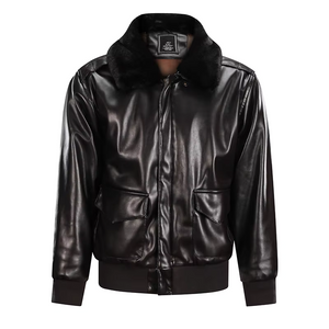 Men's Brown Pilot Jacket | Leather Jacket with Warm Collar