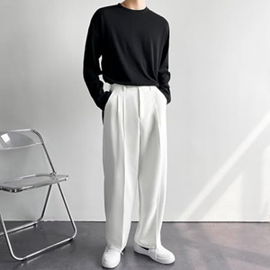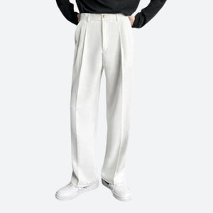 These casual trousers feature a relaxed, straight cut. Pleats at the front add structure to the leg and create a clean line. Ideal for city wear, travel, and relaxed outfits.