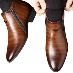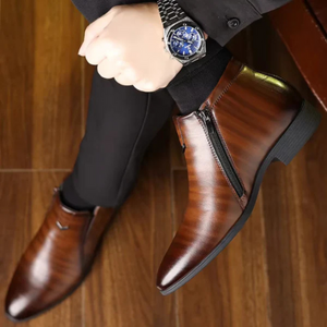 These men's leather ankle boots combine a timeless retro look with a touch of business style. Their clean design makes them suitable for both casual outfits and formal occasions. A versatile companion for every day.