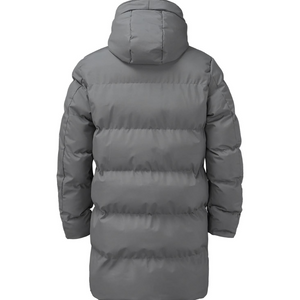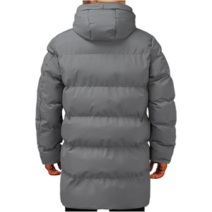This long men's jacket offers protection from cold and wind. The hood provides added security in harsh weather, making the jacket a reliable companion. Whether for everyday wear or outdoor activities, it combines functionality with a clean design.
