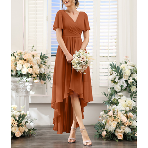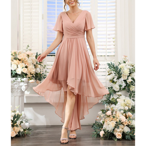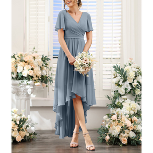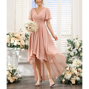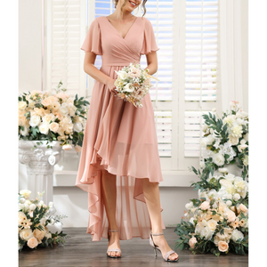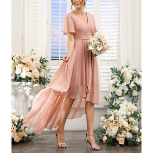This women's A-line dress with a V-neck and short sleeves is the ideal choice for weddings or special occasions. The maxi length creates a flowing look and can be styled in many different ways.