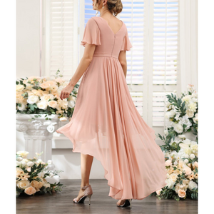 Women's A-line wedding guest dress | Maxi short sleeve & V-neck