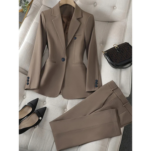 - The trousers and jacket create a harmonious overall look.