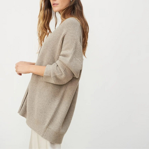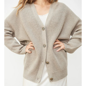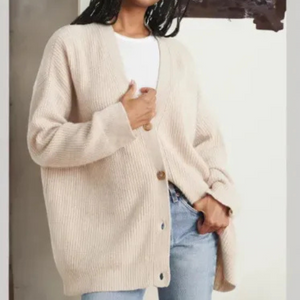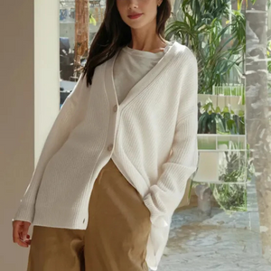 This cardigan with its delicate cable knit pattern adds structure and character to your outfit. Its relaxed fit makes it versatile and suitable for many occasions. A harmonious blend of simplicity and style that lends character to your look.