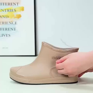 These short rubber boots are ideal for wet days and puddles. Their clean style complements various outfits while remaining understated. Perfect for everyday wear, short trips, or leisurely walks.