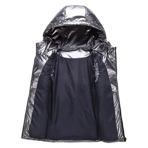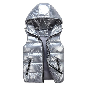 This puffer vest makes a bold statement with its metallic look. The hood and straight cut add structure to the style. Perfect for elevating layered looks, from sporty to city-ready.