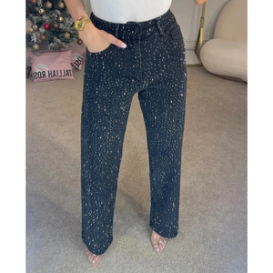 These mom jeans combine a relaxed fit with eye-catching glitter details. Perfect for adding a special touch to your outfit – whether for everyday wear, meeting friends, or for a more glamorous evening.