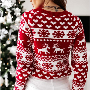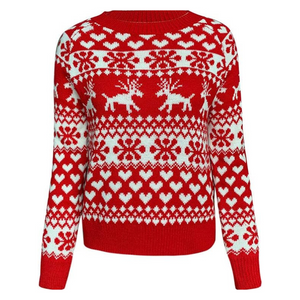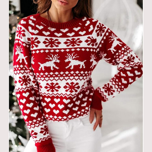 This sweater instantly adds a festive touch to any outfit. The harmonious color combination and eye-catching pattern ensure a charming appearance. Suitable for quiet days at home or special occasions.