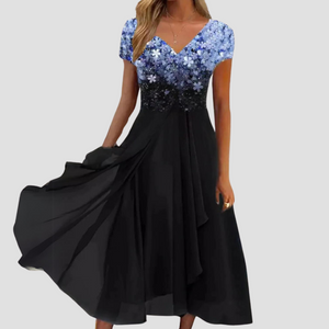 Das Alina Kleid kombiniert einen ausgestellten Schnitt mit feinen Stickereien. Der V-Ausschnitt und die maxiähnliche Länge machen es zur passenden Wahl für Tages- und Abendveranstaltungen. Ein Kleid, das Leichtigkeit und Stil vereint.