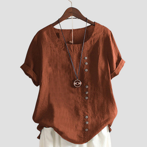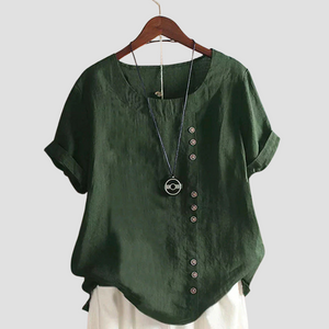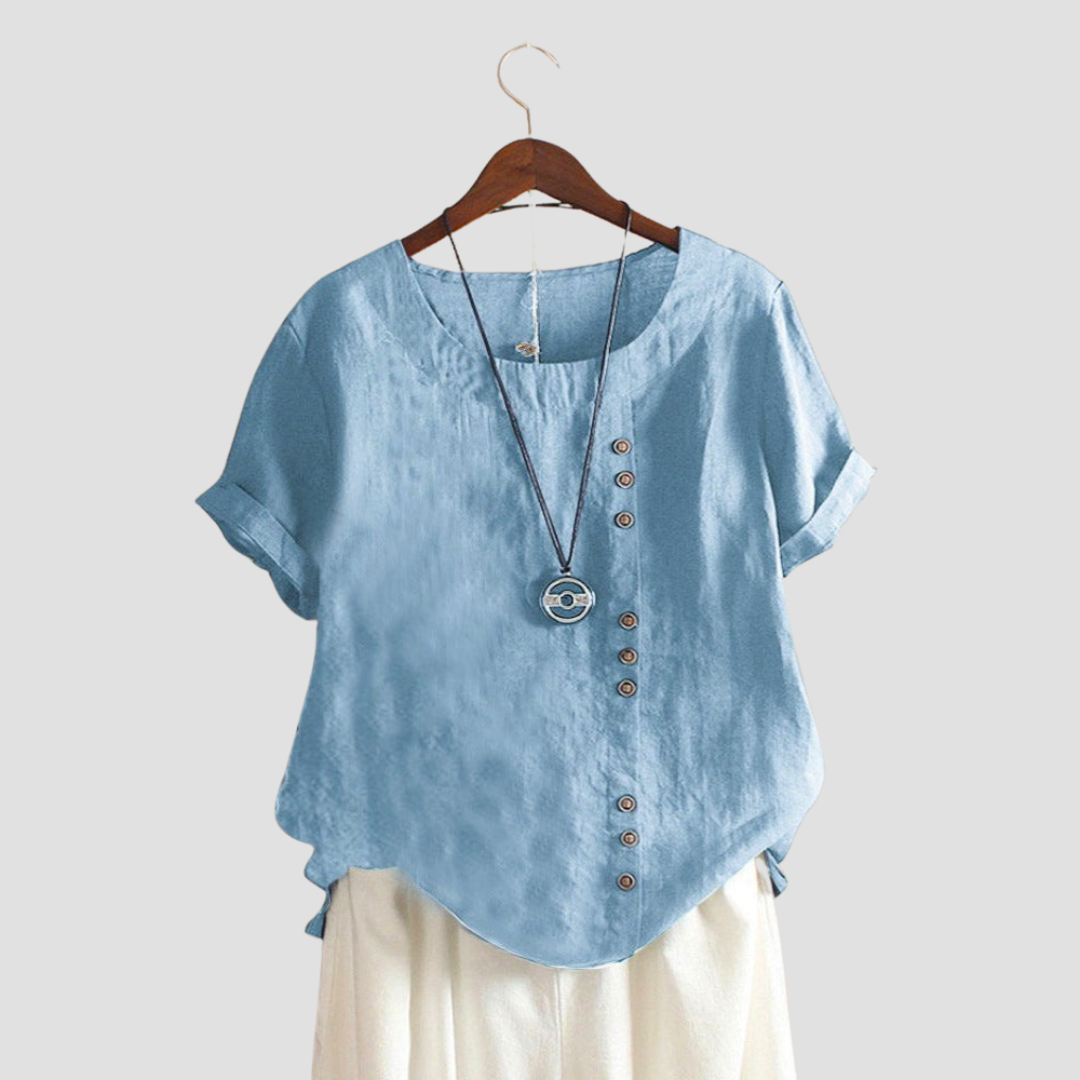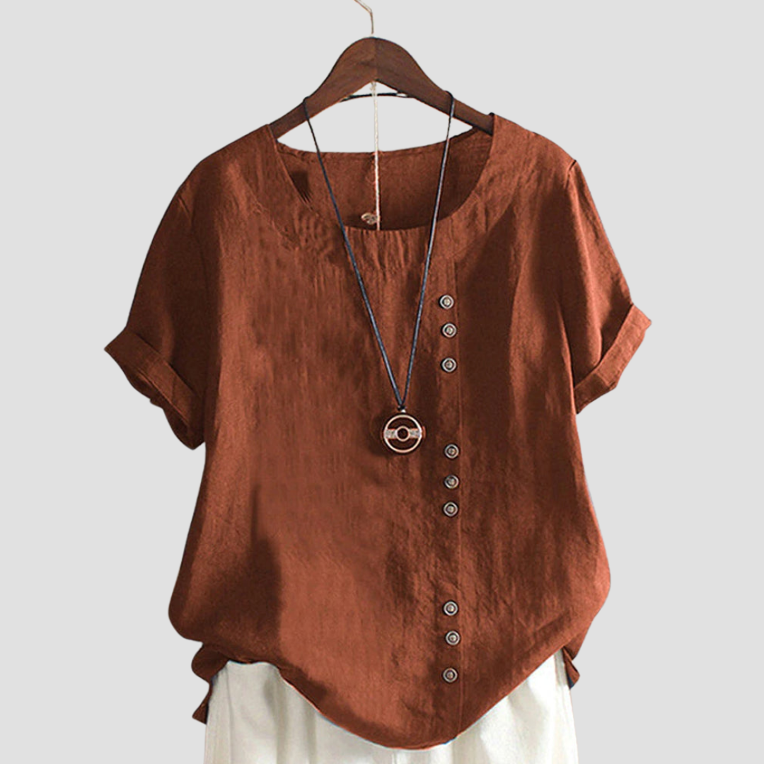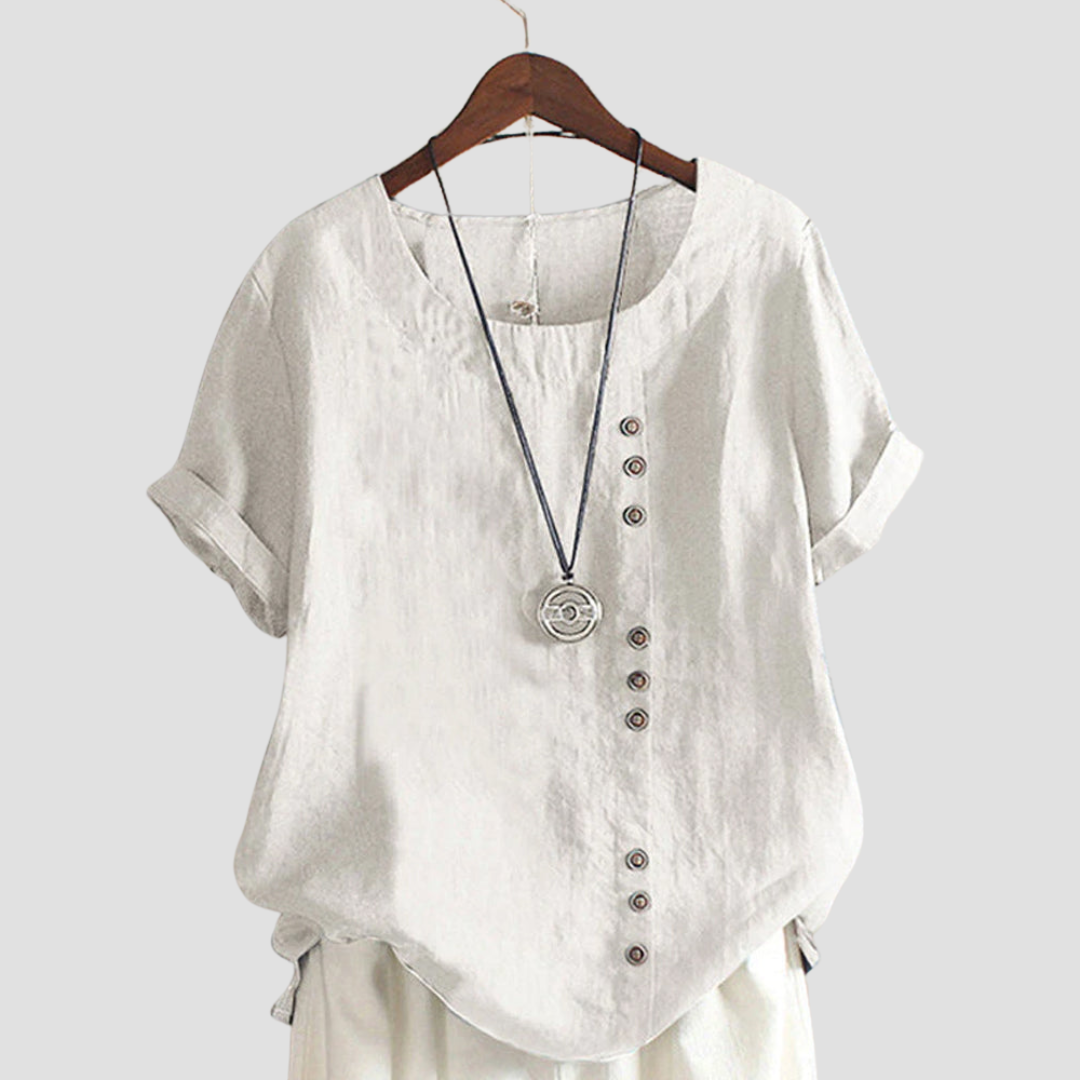 Anne | Damenbluse mit einfarbigem Knopfdesign und kurzen Ärmeln moda