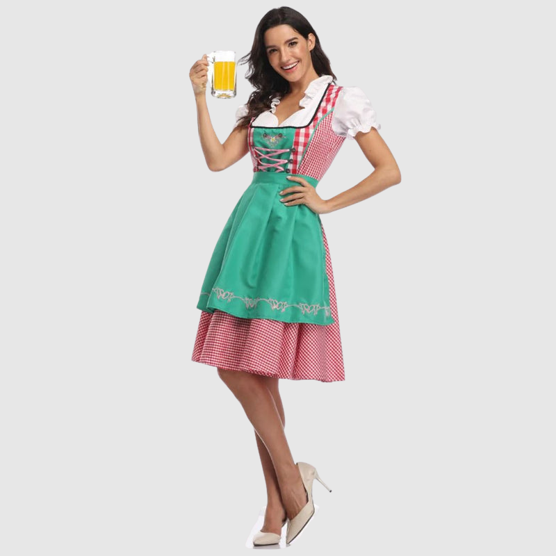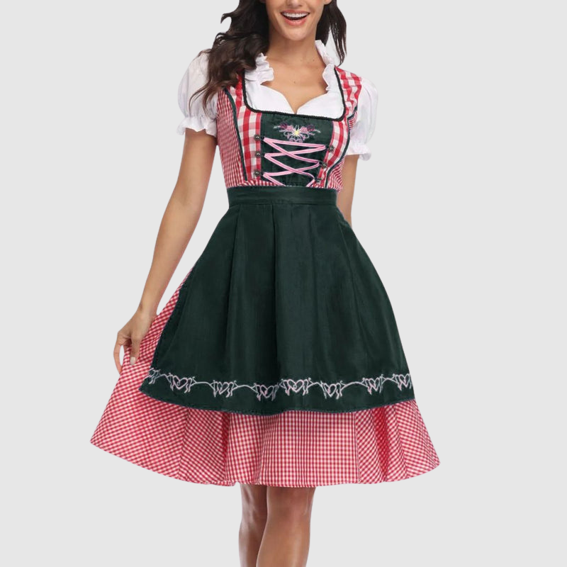 Ein Dirndl, das klassische Linien und moderne Ausstrahlung verbindet. Perfekt für das Oktoberfest, Volksfeste oder sommerliche Feiern – ein Kleid, das dich festlich begleitet.