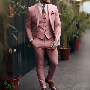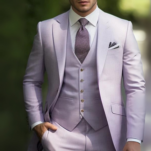 Ein dreiteiliges Anzug-Set mit klassischem Schnitt und moderner Raffinesse. Für Hochzeiten und festliche Momente geeignet.