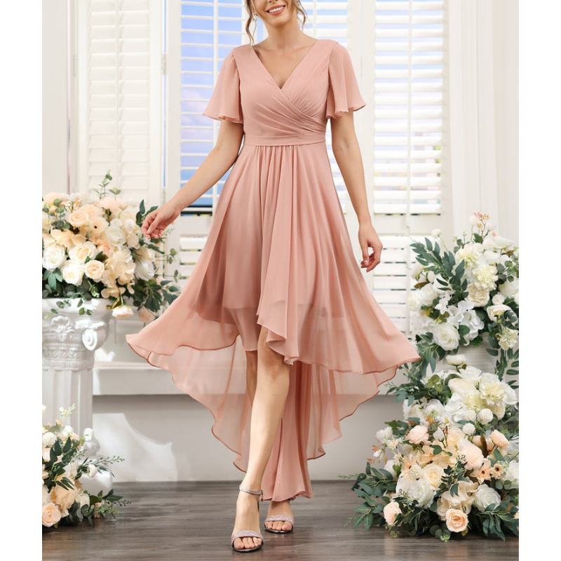 Dieses Damen A-Linie Kleid mit V-Ausschnitt und kurzen Ärmeln ist die ideale Wahl für Hochzeiten oder besondere Anlässe. Das Maxi-Länge sorgt für einen fließenden Look und lässt sich vielseitig stylen.