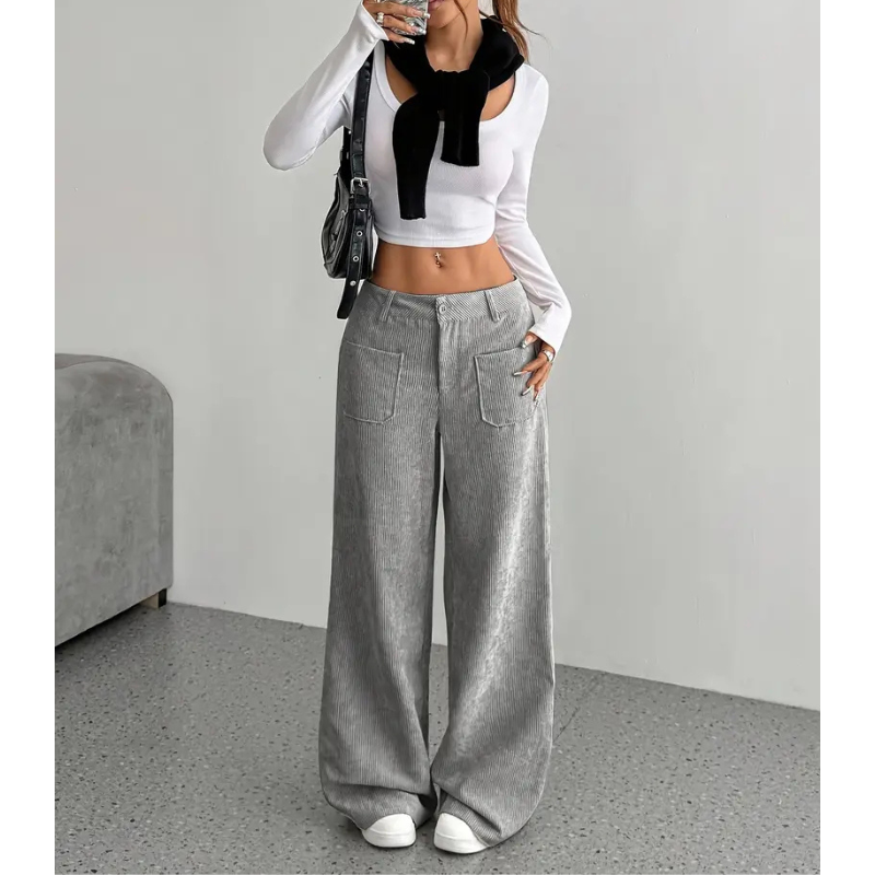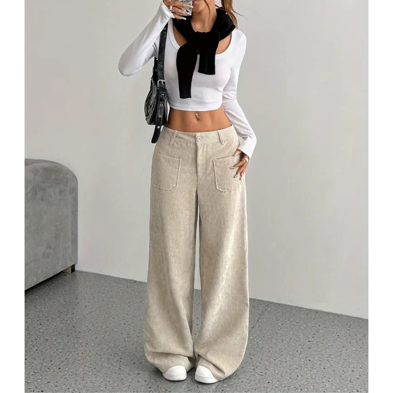 Diese Hose kombiniert eine hohe Taille mit weitem Bein für einen selbstbewussten Look. Sie lässt sich vielseitig stylen ob mit Croptop, Pullover oder Bluse. Ideal für Alltag, Freizeit oder den urbanen Streetstyle.