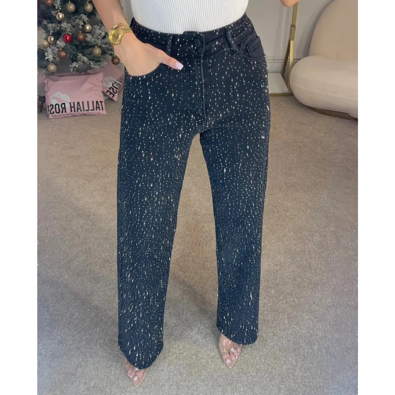 Diese Mom-Jeans vereint lockere Passform mit auffälligen Glitzer-Details. Perfekt, um deinem Outfit eine besondere Note zu geben – ob im Alltag, bei Treffen mit Freunden oder für Abende mit etwas mehr Glamour.