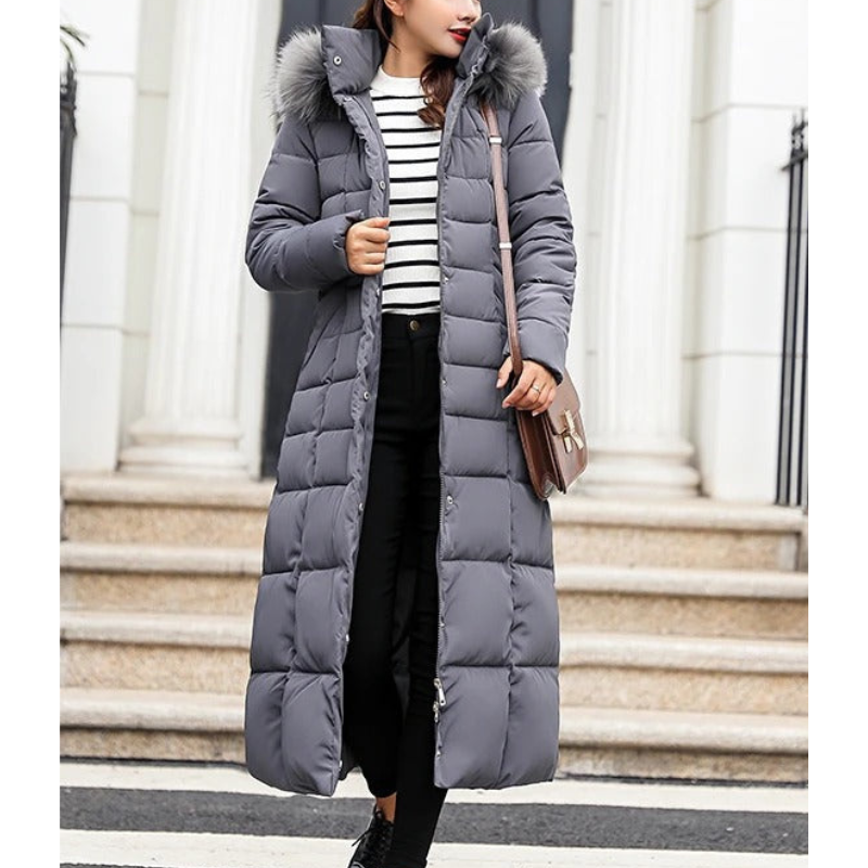 Damen Puffermantel Lang | Mit Kunstfellkragen