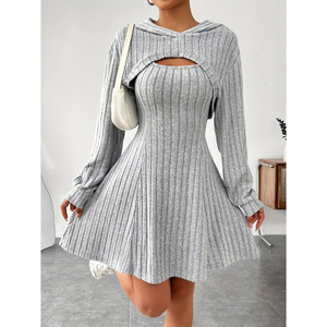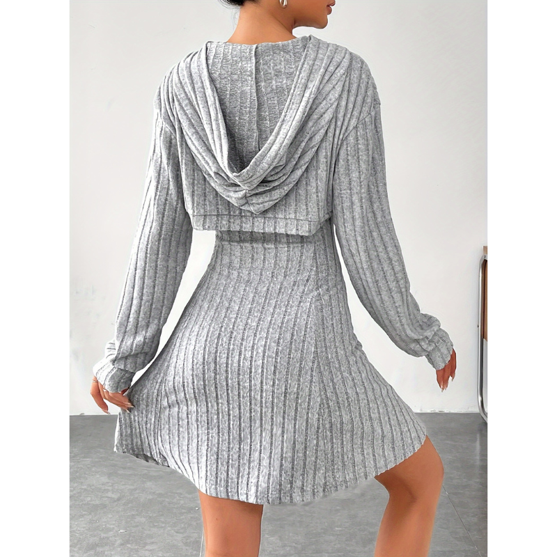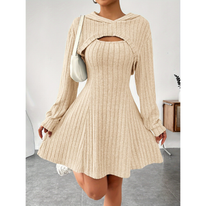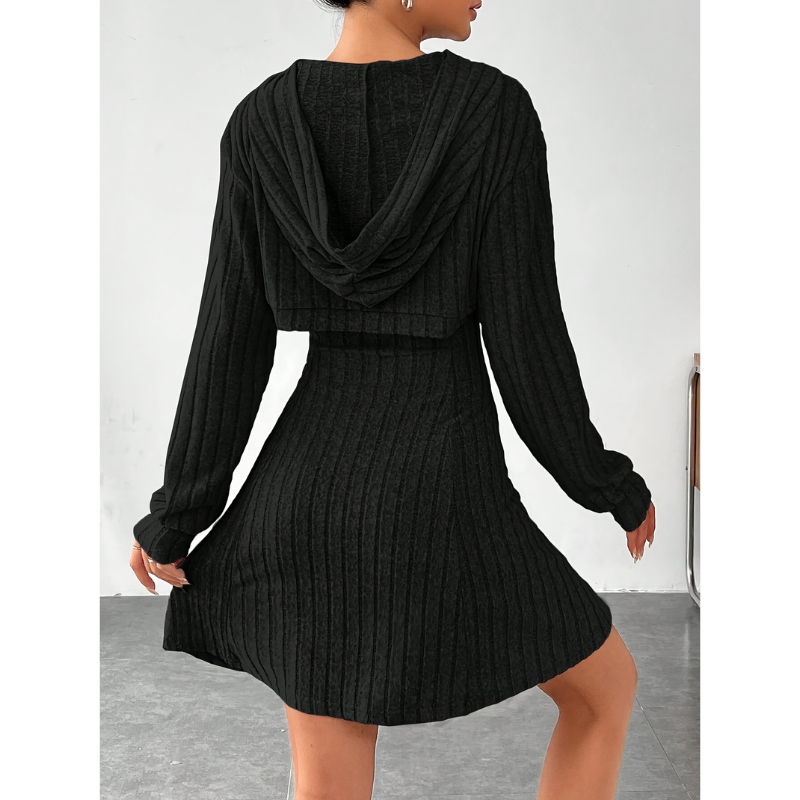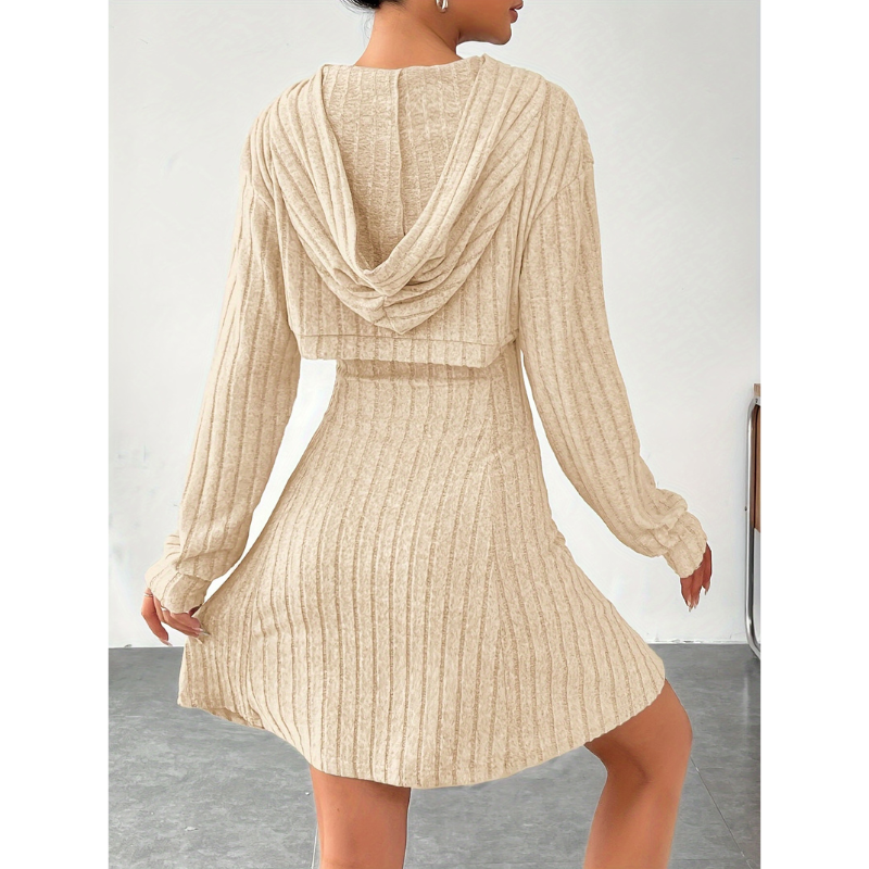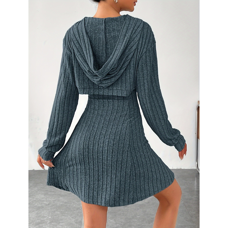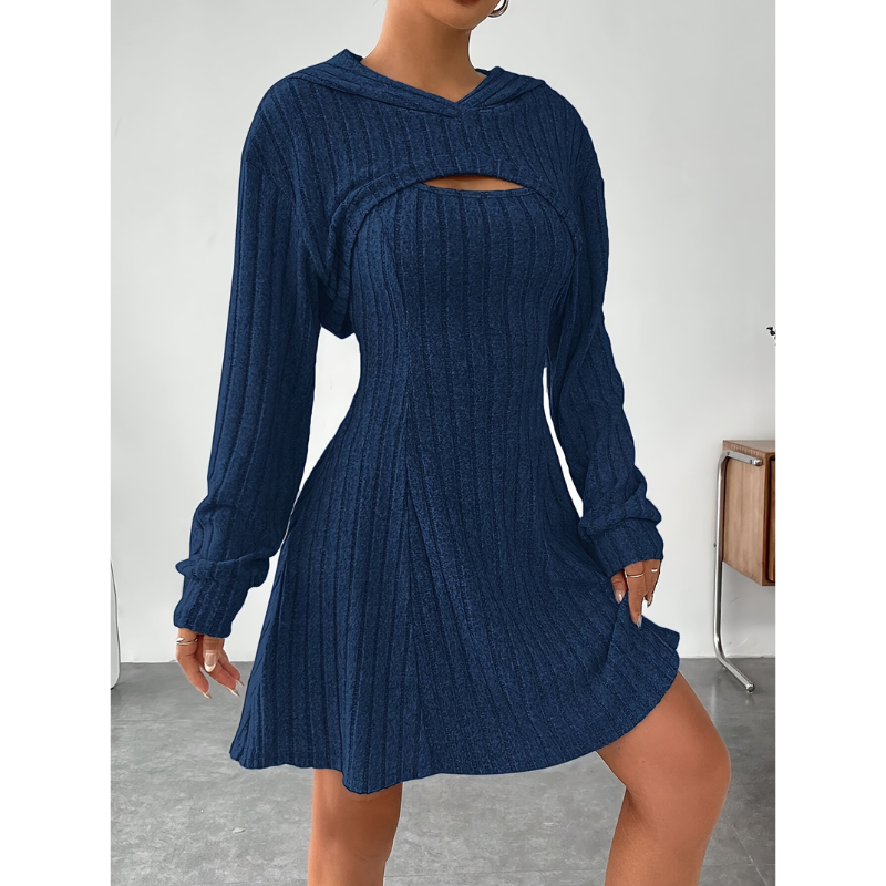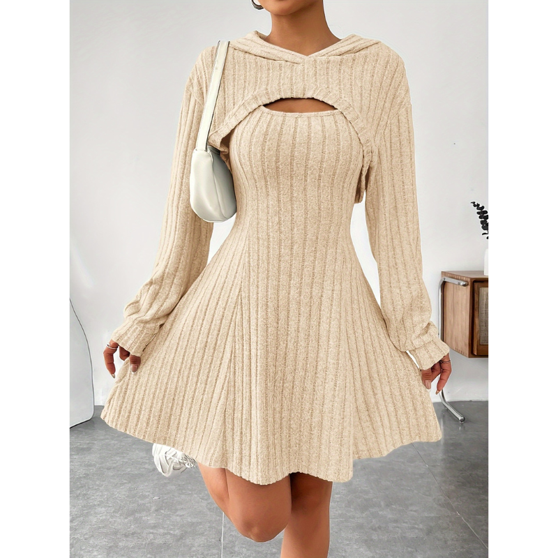 Damen Strickkleid Set | Gerippt Mit Hoodie & Ärmellos A-Linie