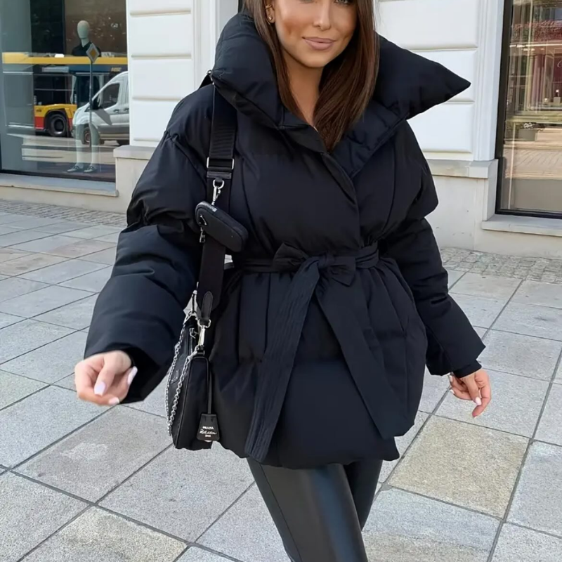 Damen Winter Kurzjacke | Tailliert Schwarz Mit Gürtel