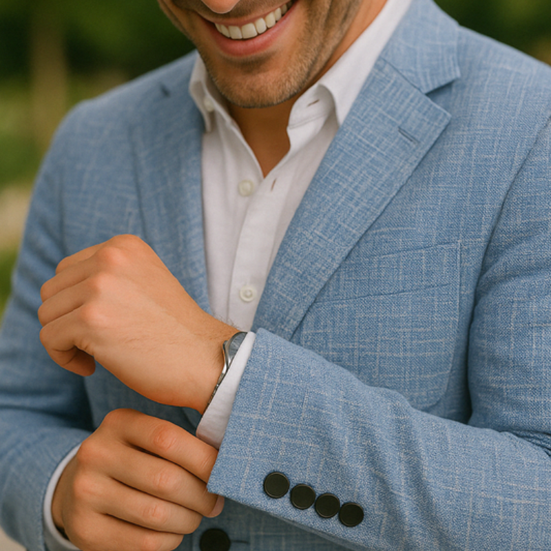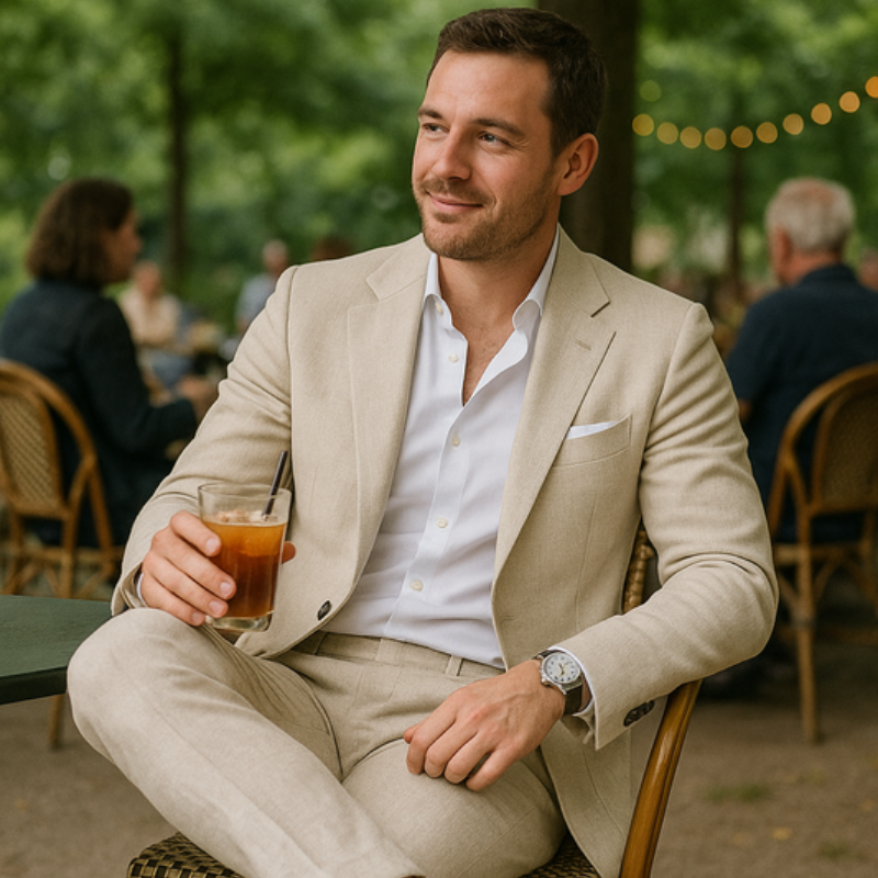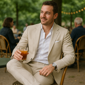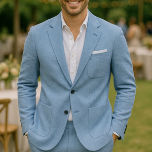 Ein Modell, das dich bei warmem Wetter begleitet. Ob Hochzeit, Stadtfest oder geschäftliches Treffen – dieser Anzug unterstützt deinen souveränen Auftritt von morgens bis abends.