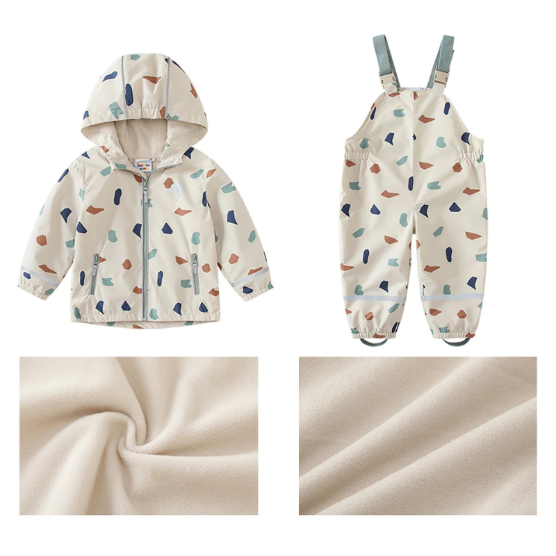 Dieses praktische Set mit Jacke und Hose schützt Kinder rundum. Egal ob beim Spielen im Kindergarten, auf Ausflügen oder bei Spaziergängen es hält zuverlässig trocken. Das Stil ist funktional und farbenfroh zugleich.