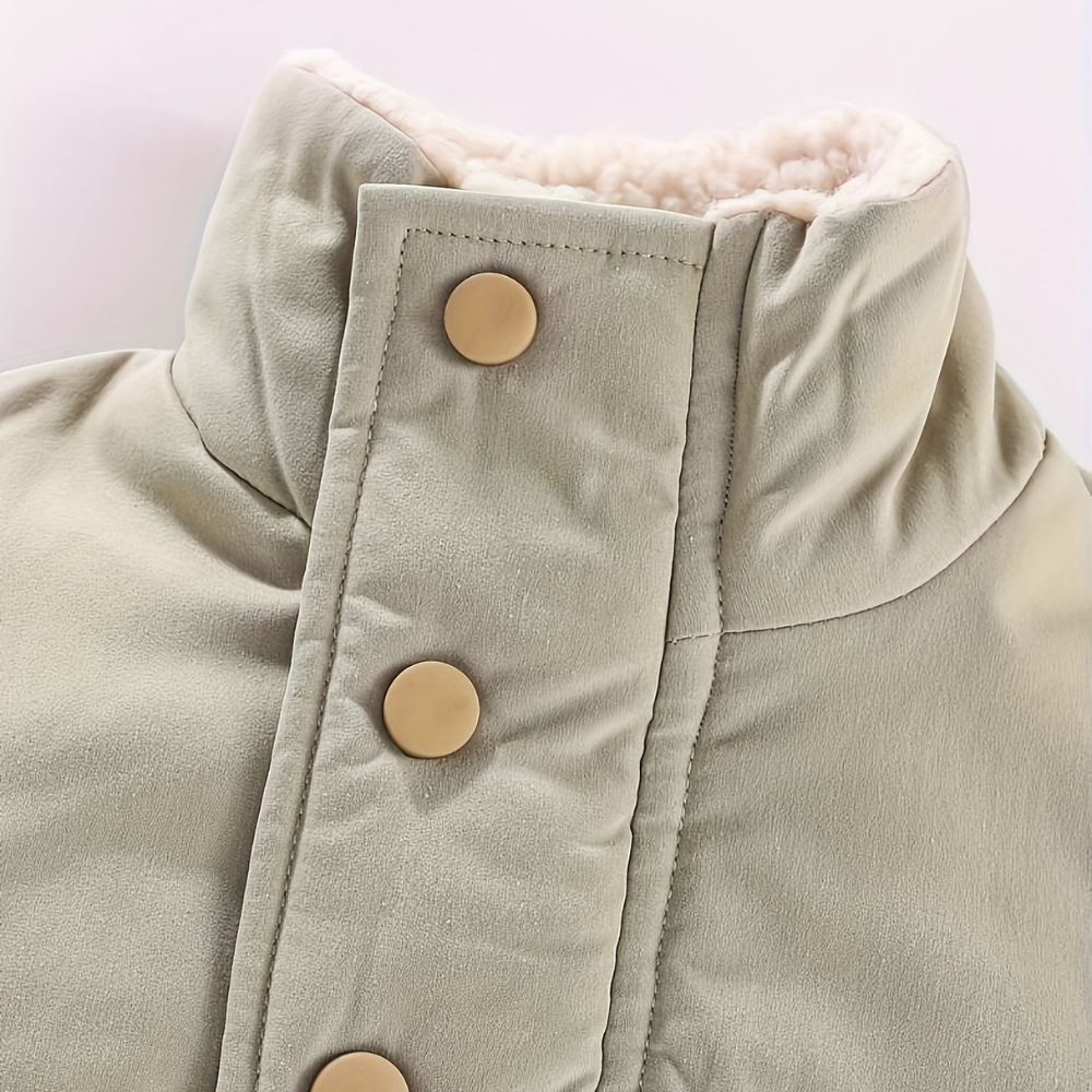 Diese Jacke hält Kinder warm und verleiht zugleich einen trendigen Look. Der hohe Kragen schützt vor Wind, während die dicke Verarbeitung für wohlige Wärme sorgt.