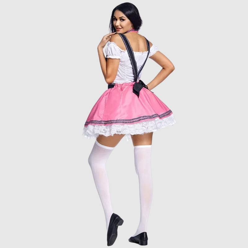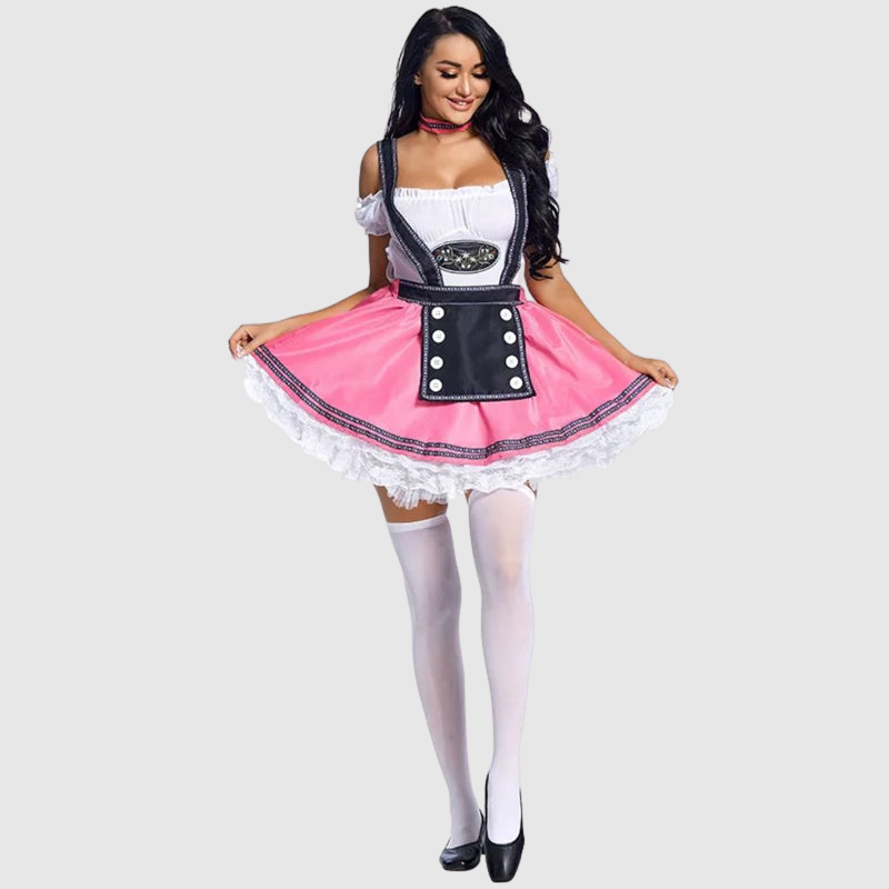 Dieses Dirndl bringt traditionelle Tracht mit einem frischen Festcharakter zusammen. Ob im Biergarten, auf dem Oktoberfest oder bei Themenveranstaltungen – es macht jeden Anlass zu einem besonderen Moment.