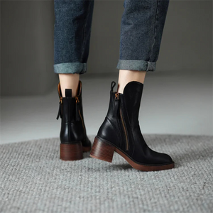 Diese Stiefeletten setzen auf eine schlichte Linienführung mit markantem Charakter. Der Blockabsatz verleiht Stabilität und Sicherheit, während das Design vielseitig kombinierbar bleibt. Perfekt für Arbeit, Alltag oder festliche Abende.
