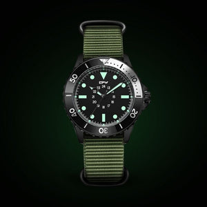 Diese taktische Felduhr im Tauchstil kombiniert praktische Funktionen mit einem markanten Look. Mit robustem Textilarmband, 24-Stunden-Anzeige und drehbarer Lünette ist sie sowohl für Outdoor-Einsätze als auch für den täglichen Gebrauch geeignet – ob beim Wandern, Reisen oder Entdecken neuer Herausforderungen.