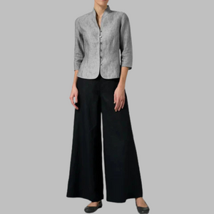 Die Tessa Bluse zeichnet sich durch einen schlichten Schnitt mit Stehkragen aus. Ihre Dreiviertelärmel und die durchgehende Knopfleiste machen sie zu einer praktischen Wahl. Perfekt kombinierbar mit Hosen oder Röcken für Alltag oder formelle Anlässe.